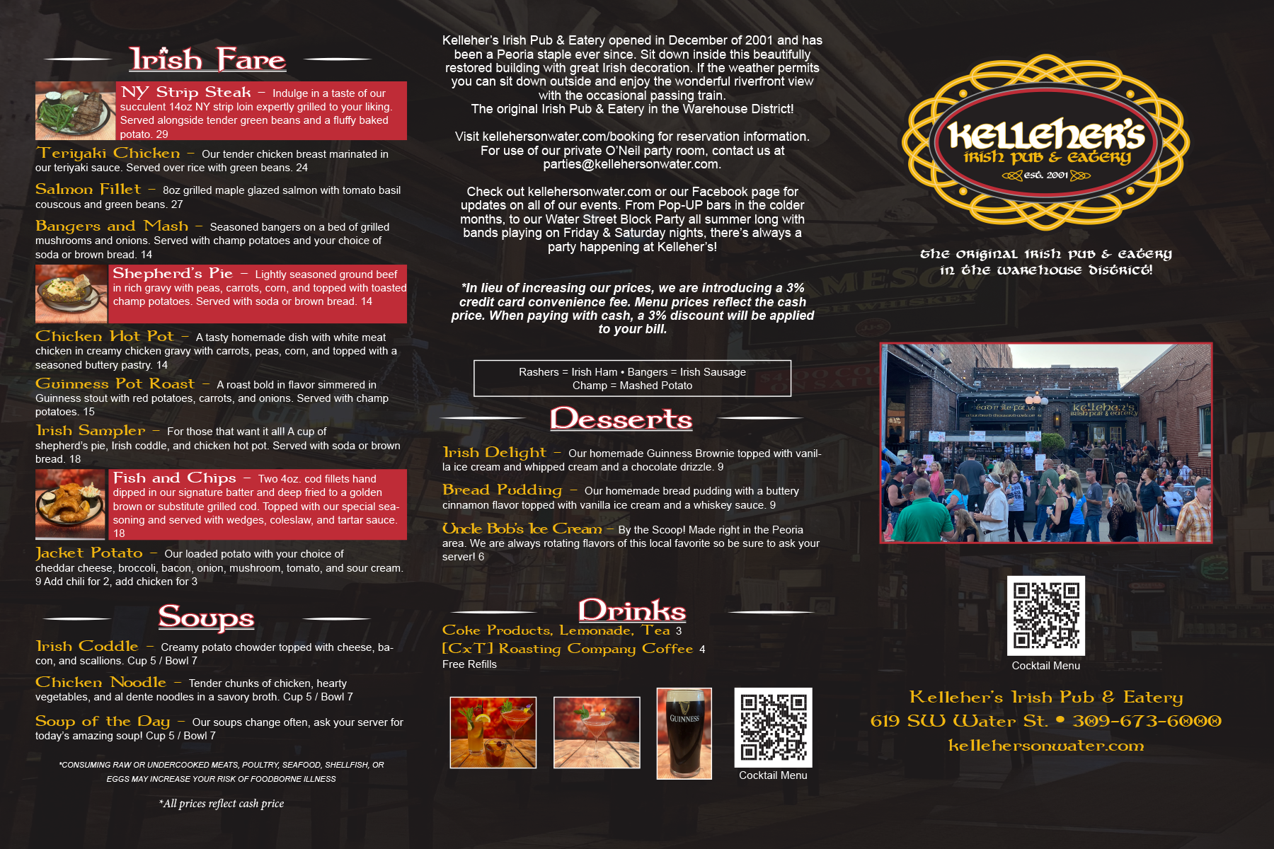Kelleher’s Irish Pub opened in December of 2001 and has been a Peoria staple ever since. Sit down inside this beautifully restored building with great Irish Decoration. If the weather permits you can sit down outside and enjoy the wonderful riverfront view.